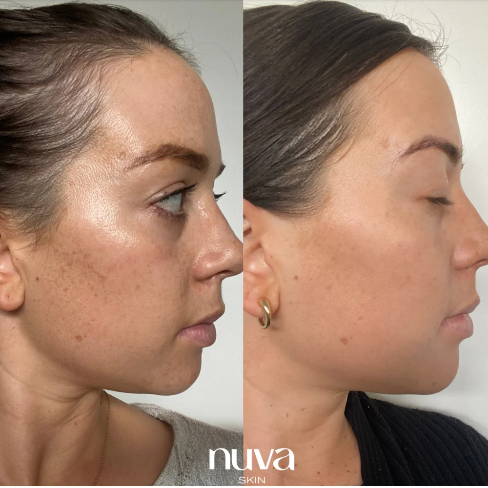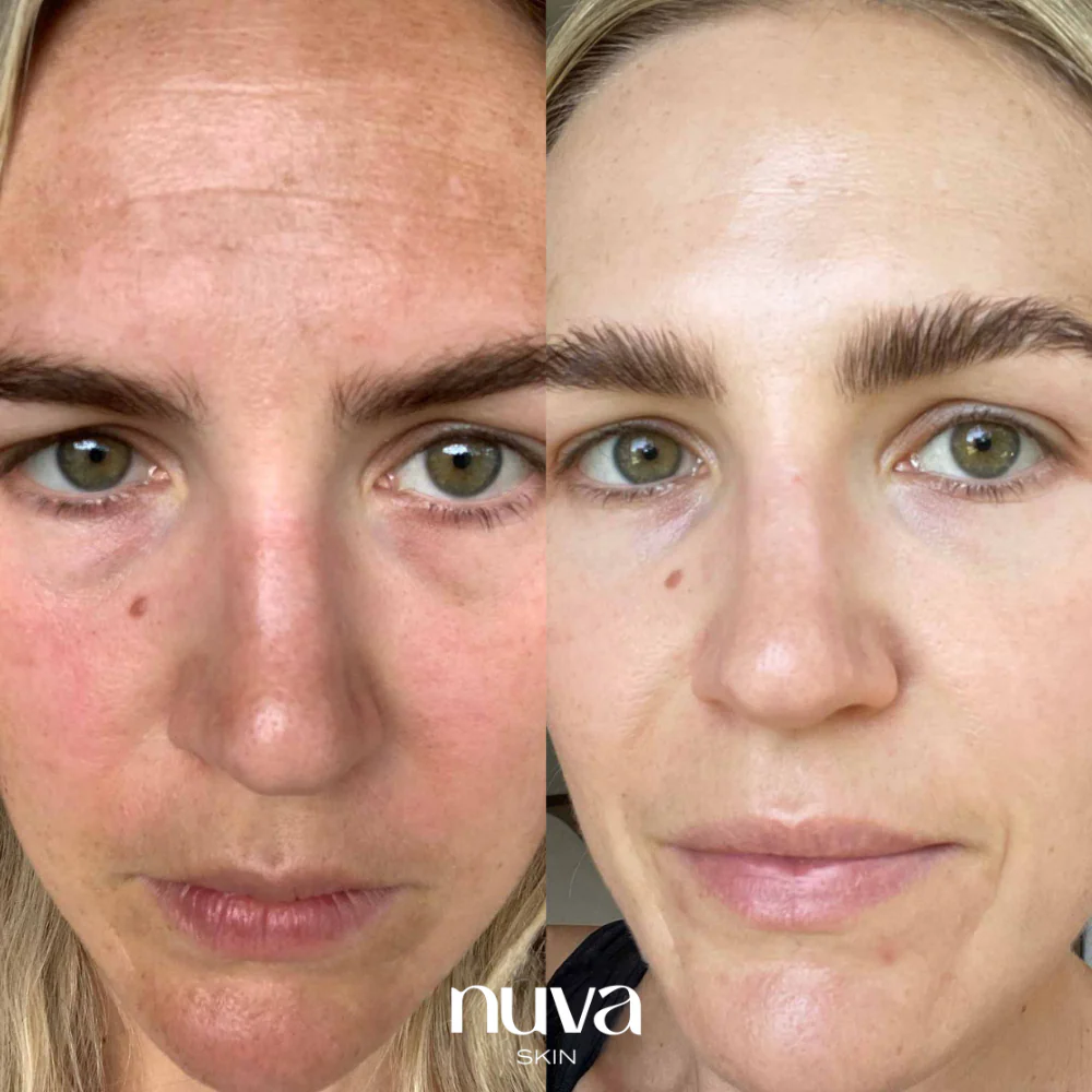 Después de varias semanas, la piel se ve más firme, suave y radiante, con una reducción en la apariencia de arrugas y líneas de expresión.